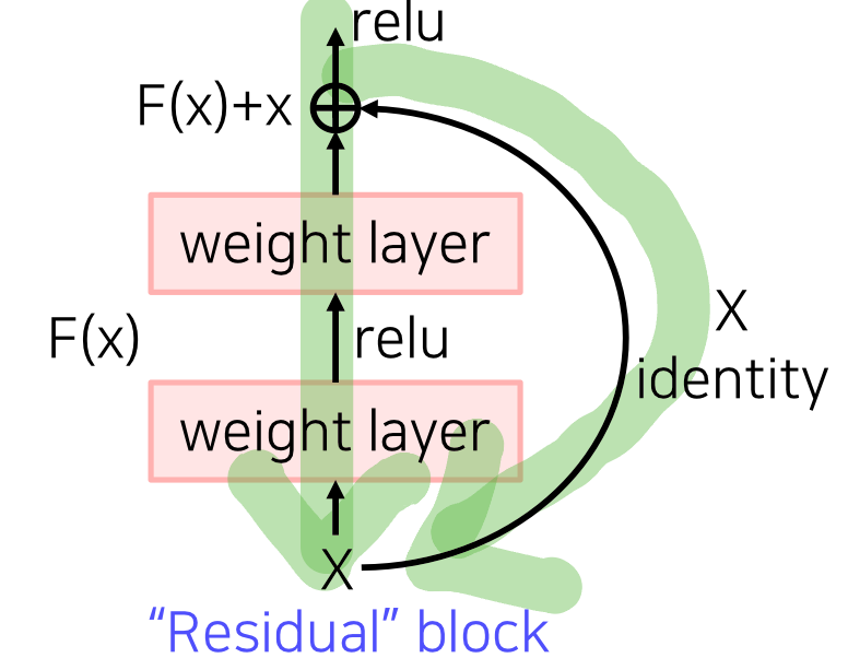 - 이거는 X를 만들어야 하는 것이고 ResNet은 X를 그대로 둔 채로 미세한 정보들만 학습을 하는 것