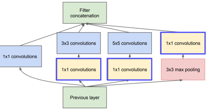 - Max pooling 에 1x1 conv를 사용한 이유는 dimension을 조절하기 위해서이다