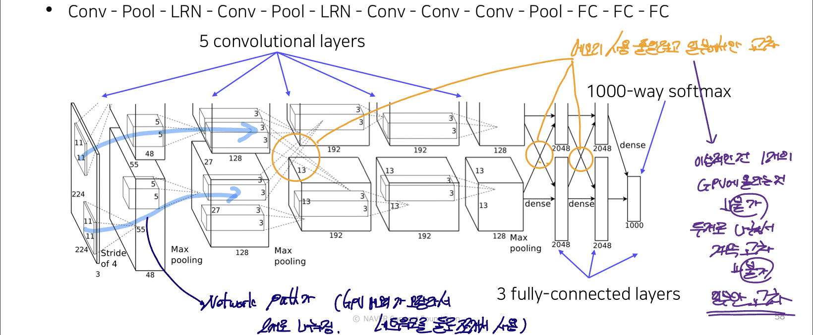 추가로 LRN 은 Local Response Normalization 인데 지금은 사용하지 않는다고 한다